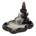 A stunningly simple backflow incense burner in a large black ceramic stacked pebble design.